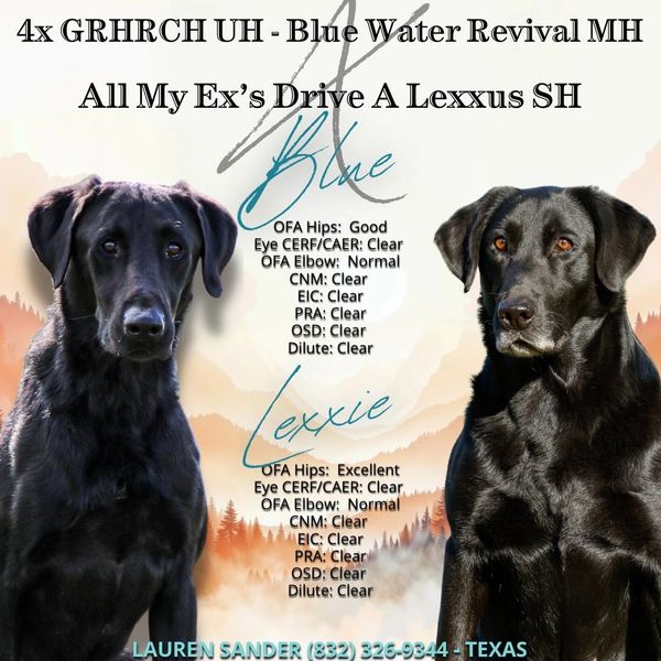 Lexxie was trained at Oak Creek Retrievers and is an incredible team mate. Her and myself (a very novice amateur handler) went 5/5 for her senior title, needs 1 more master pass to title and qualify for the master am and have 3 finished passes as well as her being a great hunting and house companion.